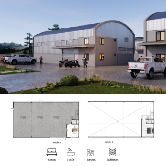 แบบโกดังสำนักงาน 2 ชั้น รหัส.WH-11 พื้นที่ใช้สอยรวมประมาณ 302 ตร.ม.