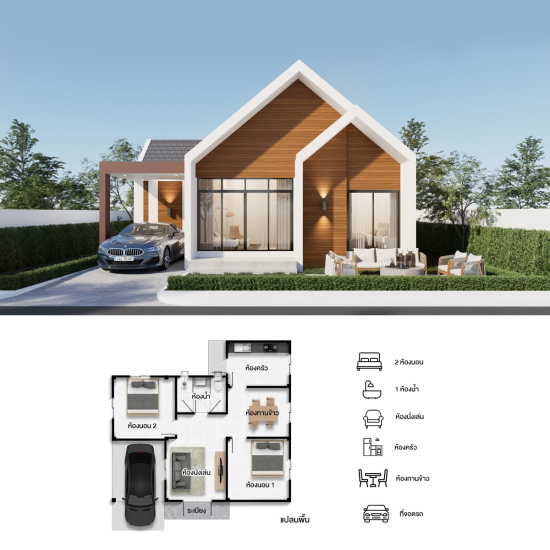 - 2 ห้องนอน